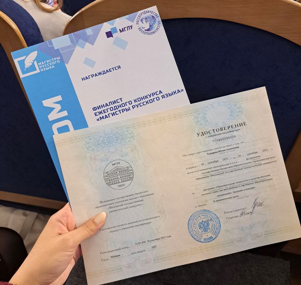 По результатам конкурса «Магистры русского языка» можно пройти программу повышения квалификации «Образовательные технологии и средства обучения русскому языку как иностранному (РКИ) в зарубежных образовательных организациях: традиции и новации» в МГЛУ, которая даёт возможность стажировки за границей в качестве преподавателя РКИ.